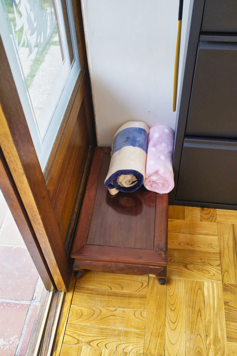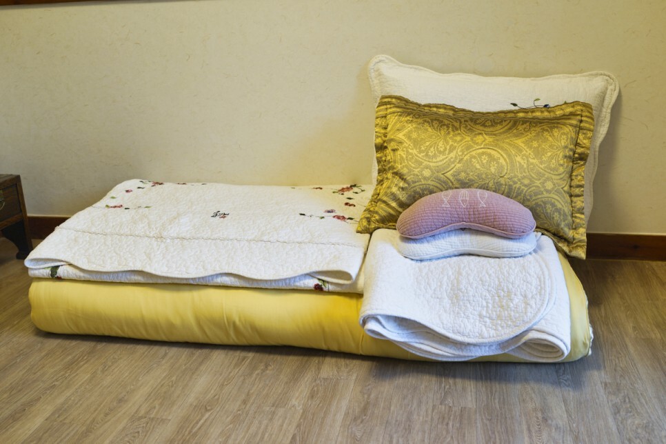 각 객실에는 작은 개별 층이 있습니다. 신발장, 베개, 소반, 무릎담요 등 세심한 배려가 보입니다.