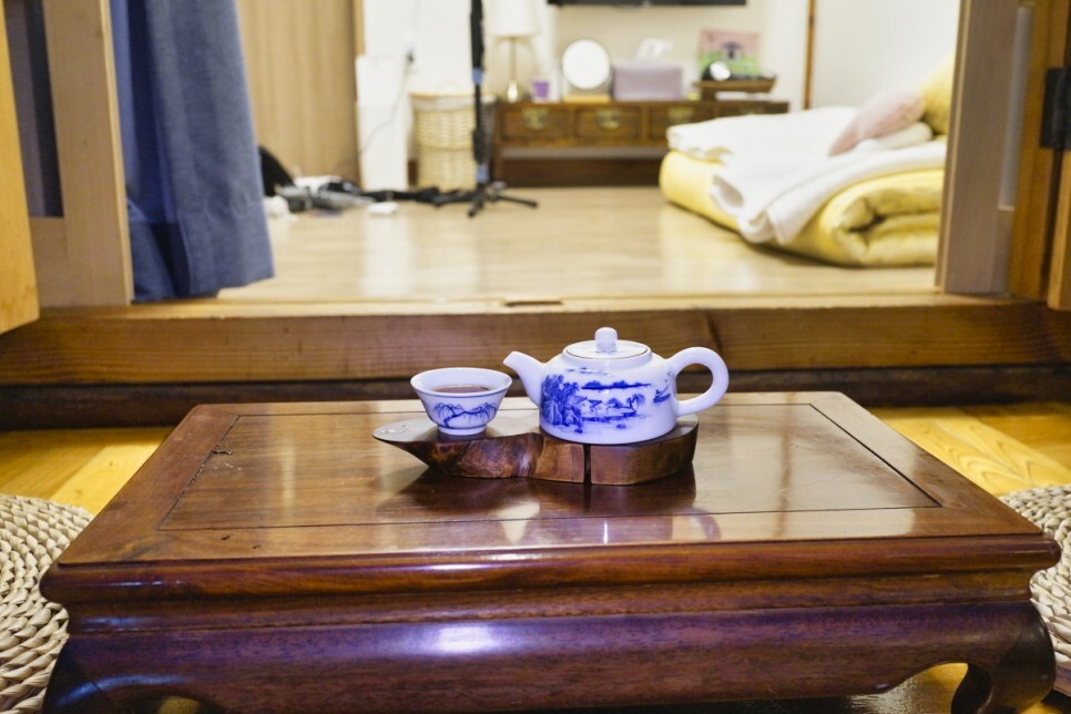 한옥에 가서 차를 마시며 사진을 찍으면 멋지게 나온다. 그래서 집에서 차 세트와 물그릇을 가져갔습니다. 기본적으로 소반이 있고, 주방에 커피잔, 정수기, 커피가 준비되어 있습니다. 커피 한 잔을 즐길 수도 있습니다.