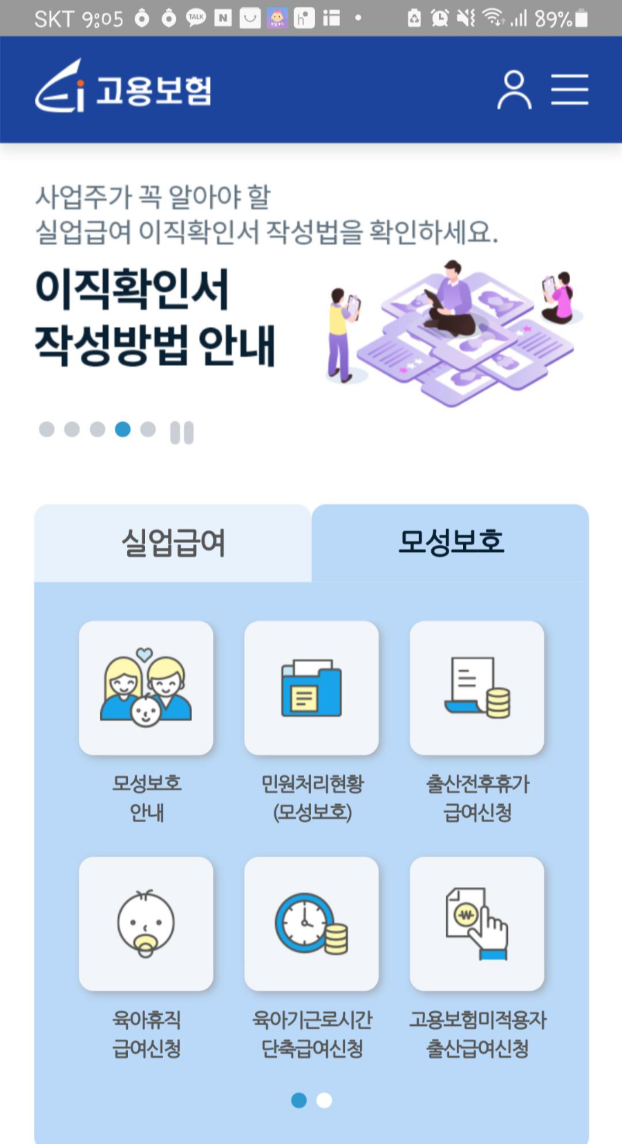 육아휴직급여 신청 고용보험 앱 신청방법