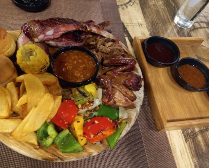 다양한 종류의 훈제 고기를 맛볼 수 있으며 숯불 구이 스테이크는 매우 맛있고 품질이 비싸지 않습니다.