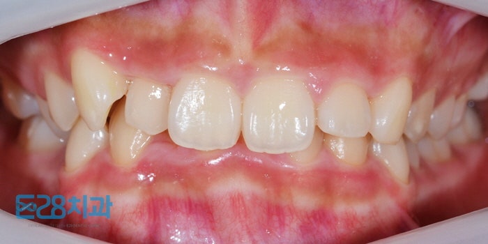 과개합이란? 윗니가 아랫니를 2~3mm 이상 덮는 것을 말합니다. 과개합이 심한 경우 아래 앞니의 치아가 보이지 않는 경우도 있습니다. 그 원인은 과개교의 주된 원인은 1. 유전적인 문제로 인한 선천적인 발생 2. 위턱의 과도한 성장 3. 치아의 모양, 크기 등 후천적인 영향 4. 잘못된 구강 습관, 여러 가지 원인이 있습니다. 아랫니가 윗니 잇몸 부분, 입 천장에 맞물리면서 저작 기능과 턱관절에 영향을 미쳐 문제를 발생시킬 수 있습니다.또 아랫니가 윗니 잇몸 부분, 입천장에 닿아 치아 뿌리 부분, 잇몸 부분에 손상을 줄 수도 있습니다.과개합이란? 윗니가 아랫니를 2~3mm 이상 덮는 것을 말합니다. 과개합이 심한 경우 아래 앞니의 치아가 보이지 않는 경우도 있습니다. 그 원인은 과개교의 주된 원인은 1. 유전적인 문제로 인한 선천적인 발생 2. 위턱의 과도한 성장 3. 치아의 모양, 크기 등 후천적인 영향 4. 잘못된 구강 습관, 여러 가지 원인이 있습니다. 아랫니가 윗니 잇몸 부분, 입 천장에 맞물리면서 저작 기능과 턱관절에 영향을 미쳐 문제를 발생시킬 수 있습니다.또 아랫니가 윗니 잇몸 부분, 입천장에 닿아 치아 뿌리 부분, 잇몸 부분에 손상을 줄 수도 있습니다.위 환자도 유전적, 선천적 발생으로 인한 턱뼈의 크기, 성장으로 인한 과개합 환자입니다.치아가 휘어져 있고 지나치게 윗턱이 아래턱과 맞물리는 것을 관찰할 수 있습니다.돌출구가 아니었기 때문에 발치를 하지 않고 턱의 성장을 유도하여 다듬는 전체 교정을 하기로 했습니다.교정 중인 사진입니다. 치아에도 교정장치가 부착되는데 안정적인 교합을 만드는 가철성 전방교합판(Anterior Bite Plate) 장치를 먼저 진행합니다.교정 중인 사진입니다. 치아에도 교정장치가 부착되는데 안정적인 교합을 만드는 가철성 전방교합판(Anterior Bite Plate) 장치를 먼저 진행합니다.치료 후 사진입니다.교정치료가 끝난 사진입니다. 전체 교정과 3개월에 한 번 진행되는 E28 관리 프로그램과 함께 1년 9개월이 걸렸습니다.치료 후 사진입니다.교정치료가 끝난 사진입니다. 전체 교정과 3개월에 한 번 진행되는 E28 관리 프로그램과 함께 1년 9개월이 걸렸습니다.치료 후 사진입니다.교정치료가 끝난 사진입니다. 전체 교정과 3개월에 한 번 진행되는 E28 관리 프로그램과 함께 1년 9개월이 걸렸습니다.치료 후 사진입니다.교정치료가 끝난 사진입니다. 전체 교정과 3개월에 한 번 진행되는 E28 관리 프로그램과 함께 1년 9개월이 걸렸습니다.치료 후 사진입니다.교정치료가 끝난 사진입니다. 전체 교정과 3개월에 한 번 진행되는 E28 관리 프로그램과 함께 1년 9개월이 걸렸습니다.치료 후 사진입니다.교정치료가 끝난 사진입니다. 전체 교정과 3개월에 한 번 진행되는 E28 관리 프로그램과 함께 1년 9개월이 걸렸습니다.앞과 뒤의 비교 사진입니다. 이처럼 골격의 부조화가 적고 앞니가 옥니처럼 되어 있는 경우 짧은 치료기간으로 만족스러운 교합을 유도할 수 있습니다.위 환자도 칫솔질 관리가 소홀했던 환자였습니다. E28 관리 프로그램을 잘 들어주셔서 양치 습관과 입안 환경도 대폭 개선되어 교정 중 충치, 교정 후에도 충치 없이 교정 치료가 완료되었습니다. 교정 후에도 E28 관리 프로그램으로 유지 관리를 계속할 수 있습니다.교정치료 시 칫솔질 관리가 잘 되지 않으면 위 사진처럼 교정 중 치료를 하거나 교정 후 충치치료를 하게 되는 경우가 많다고 합니다. 우선 교정 전에도 충치가 없는지 정확하게 검진한 후 충치 치료를 마치고 교정을 해야 합니다. 가장 중요한 것은 양치질 관리입니다.대구치경치료: E28치과 11년이 지나도 치주염, 치조골 손상이 없는 이유는? – 철저한 임플란트 사후관리! E28 전문가들에 따르면 세균막 관리 11년이 지났는데도 치주염, 치조골 손상이 없는 이유는? – 철저한 임플란트 사후관리! E28 전문가 하면 세균막관 blog.naver.com입안에 장치물을 부착하는 동안 교정 중 충치, 치주질환 예방을 위해 E28치과는 교정기간 동안 스케일링, 불소, 치아관리용품 제공, 양치교육이 포함된 E28프로그램을 무료로 함께 진행합니다.교정 중 충치가 생기거나 관리가 힘들 것 같은 걱정은 없습니다.궁금하신 점이나 문의사항이 있으시면 언제든지 친절하게 상담 안내해 드리겠습니다. E28치과는 다양한 진료경험을 바탕으로 환자에게 최선의 치료결과를 보장합니다.#대구치과 #대구임플란트 #대구임플란트가격 #이팔연합치과 #대구치과미백가 #대구임플란트가격 #대구충치치료 #대구치과교정 #대구심미보철 #대구이갈이 #대구스케일링 #대구스케일링 #대구신경치료 #대구신경치료 #대구현미경신경치료 #대구앞니브릿지 #대구레진치과 #대구치과보톡스 #대구임플란트가격, 대구골이식 #대구부분치과교정 #대구치과 #대구치과의원