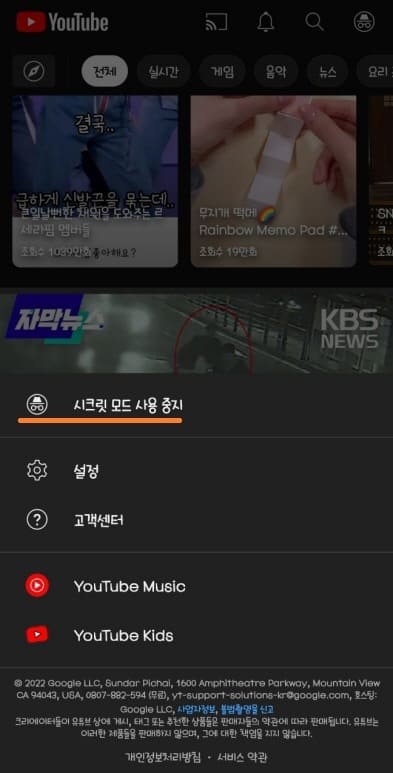 모바일 유튜브 시크릿 모드