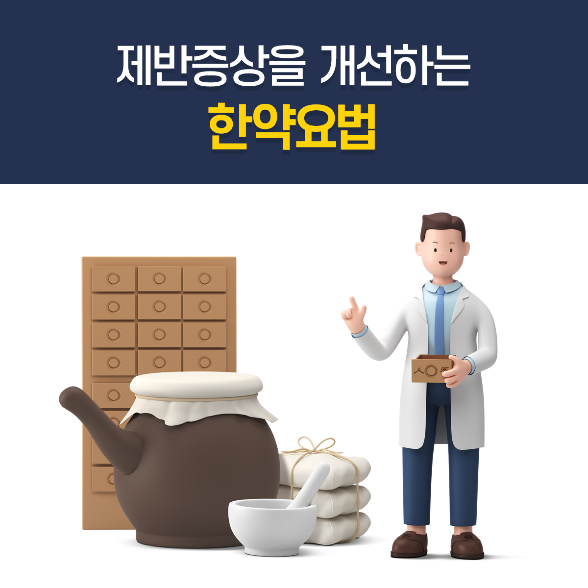 또한 한약의 경우 체내에 쌓인 혈과 염증을 제거하고 오장 기능을 정상화시킨다. 부항과 뜸 시 혈액순환을 좋게 하고 몸을 따뜻하게 하는 효과가 있다. 마지막으로 침술의 경우 경혈을 자극하여 염증을 없애고 다시 혈류를 적절하게 조절한다.