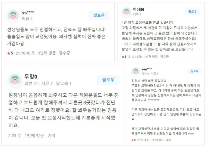 직접 느껴보면 외모에 대한 복합적인 감정이 없는 사람을 찾기 힘들다. 그래도 외부에서 싫어하는 것이 항상 있습니다. 대면 상황은 많은 사람들과 대화를 할 때 발생하는데, 그 때 제 단점을 숨기는 동시에 부담감을 느끼기도 해요. 위례교정의 도움이 필요하신 분들을 보면 치아교정으로 인한 부정교합 때문에 치과를 찾는 이유가 너무 많아 이를 드러내고 웃을 수 없을 것 같습니다. 내 깨끗하고 하얗고 건강한 치아를 배우자에게 보여주면 세련되고 단정한 느낌이 듭니다.