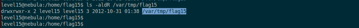 하지만 lol 여기에 첨부하는 방법은 RPATH 경로인 /var/tmp/flag15에 쓰기 권한이 있습니다. ㅋㅋㅋ